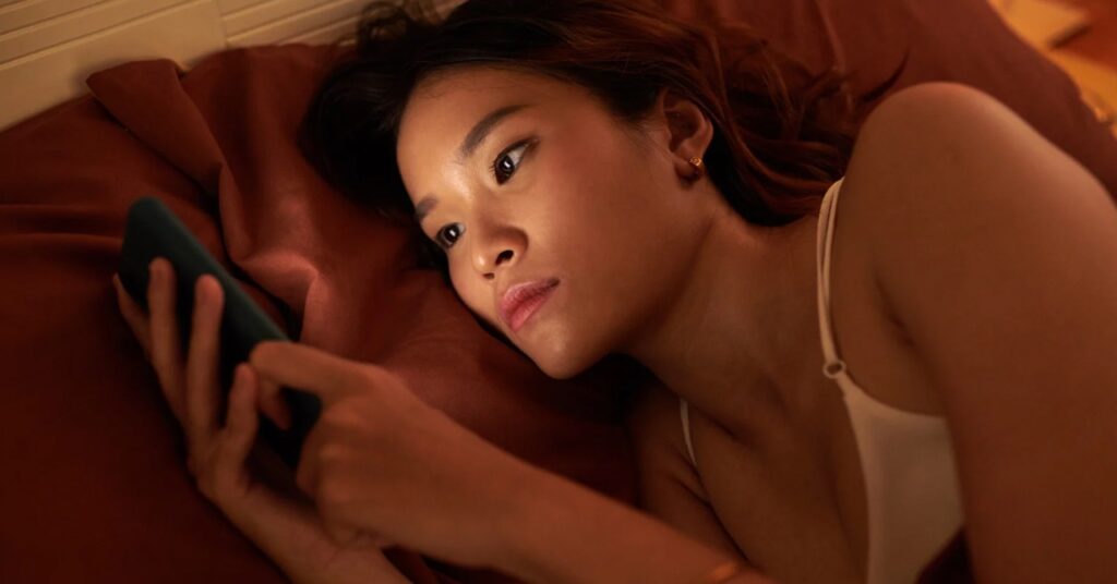 寝る前にスマホとにらめっこしている